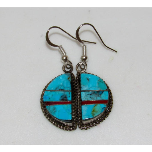 Navajo Turquoise Coral Inlay Half Moon Earrings