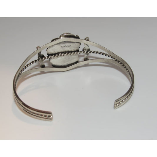Navajo Turquoise Inlay Cuff Bracelet Sterling Steve Francisco Native American