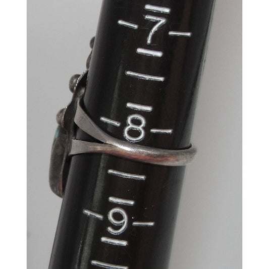 Old Pawn Navajo Turquoise Squash Blossom Ring Size 8 Sterling Silver