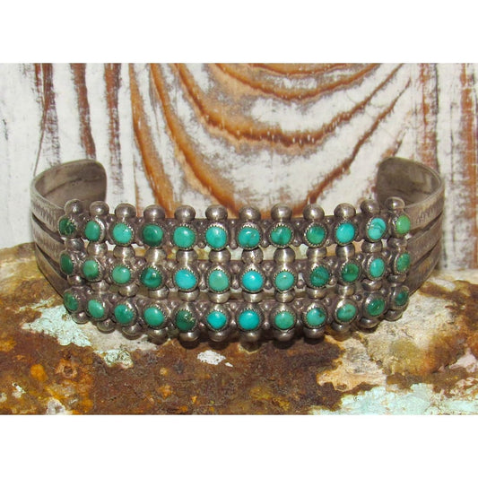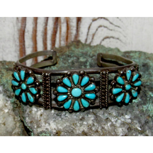 Old Pawn Zuni Turquoise Cluster Cuff Bracelet Turquoise Sterling Silver