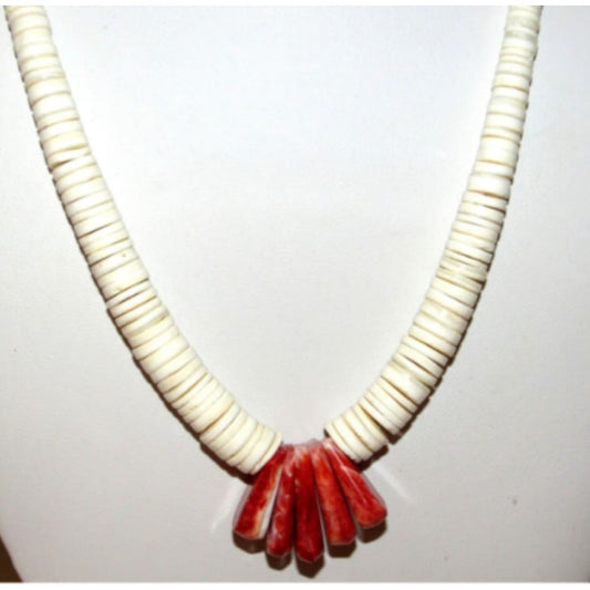 Santo Domingo Lupe Lovato Heishi Necklace White Shell Spiny Oyster Jaclas