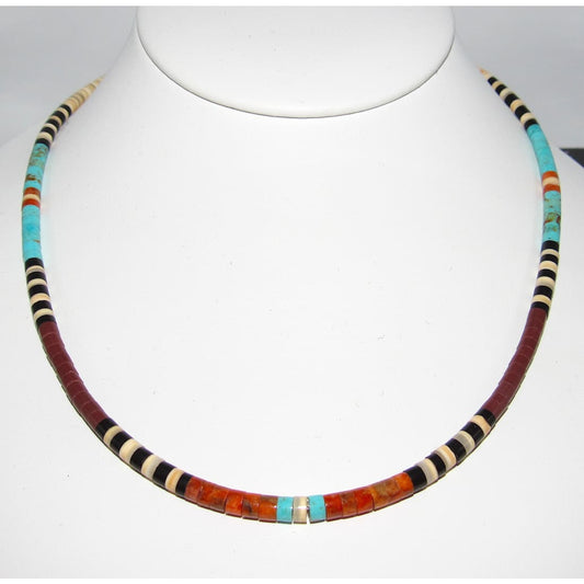 Santo Domingo Kingman Turquoise Orange Spiny Heishi Necklace Lupe Lovato