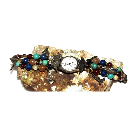 Southwestern Traditions Sterling Silver Turquoise Lapis Beads Charms Watch