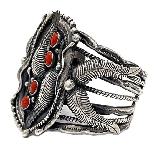 Vintage Navajo Sterling Silver Coral Cuff Bracelet Herbert Tsosie