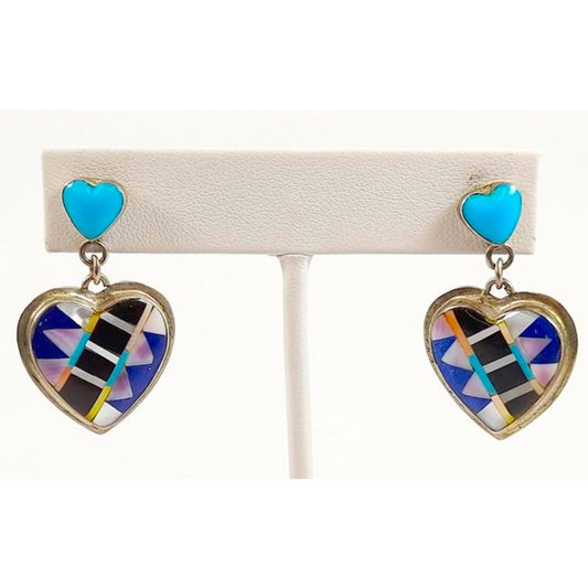 Vintage Navajo Sterling Silver Heart Dangle Earrings Sandra Kenton
