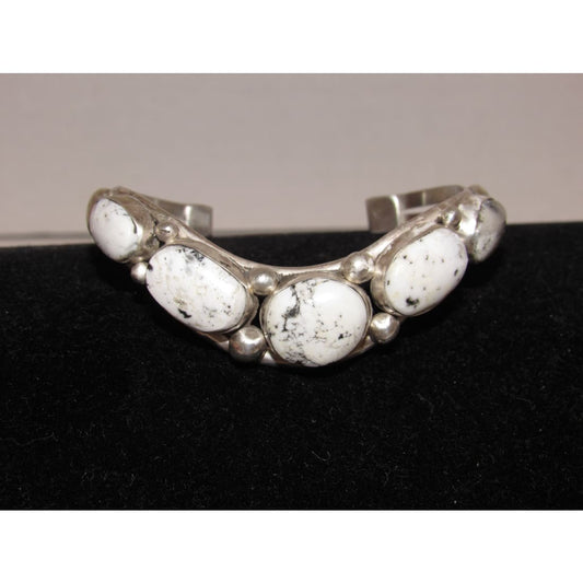 Navajo Davida Lister White Buffalo Cuff Bracelet 925 Sterling Silver Signed