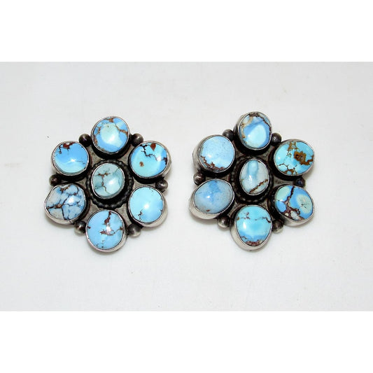 Navajo Golden Hills Turquoise Cluster Post Earrings Sterling Silver T. Long