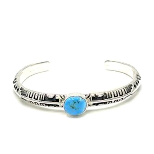 Navajo Blue Royston Turquoise Sterling Stacker Cuff Bracelet Ingot Bennie Ramone