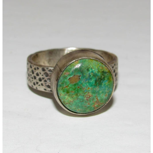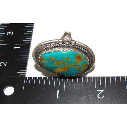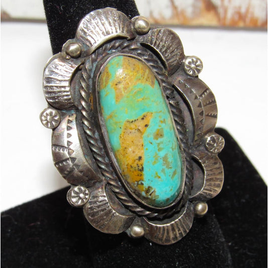 Navajo Royston Turquoise Statement Ring Sz 7.5 Sterling Silver Signed Native