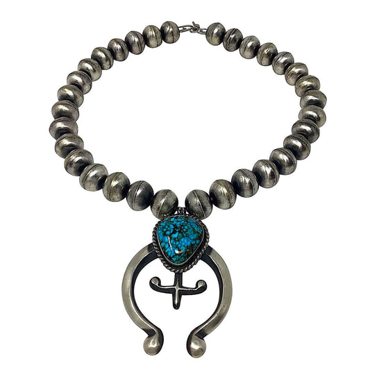 Navajo Squash Blossom Necklace Kingman Turquoise Necklace Sterling Silver