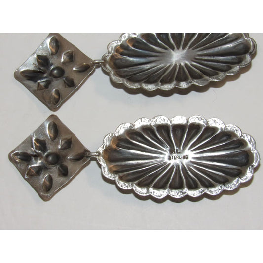 Navajo Statement Concho Earrings Sterling Silver Royston Turquoise 4"L