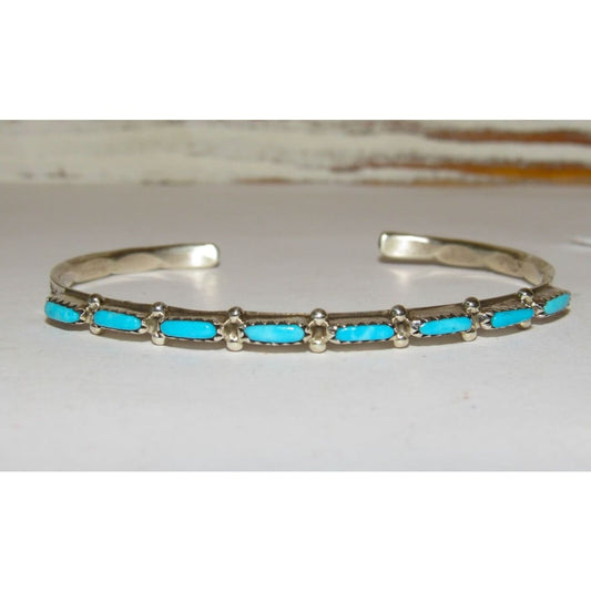 Zuni Turquoise Petit Point Stacker Cuff Bracelet Sterling Silver M. Hannaweeka