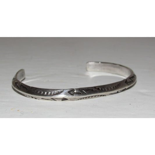 Navajo Carinated Hand Stamped Ingot Double Sided Cuff Bracelet Signed Native