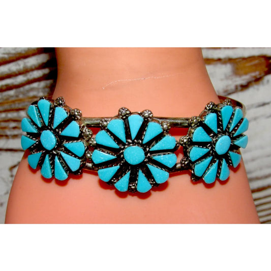 Zuni Turquoise Cluster Cuff Bracelet Sterling Silver David & Mary Chavez