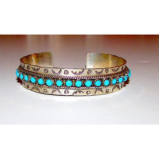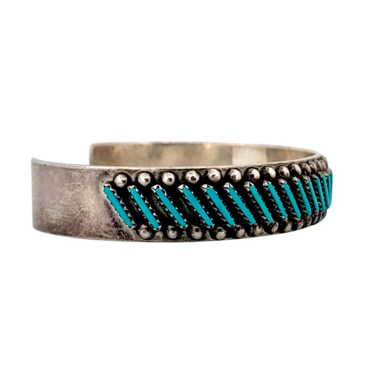 Vintage Zuni Turquoise Petit Point Cuff Bracelet Sterling Silver
