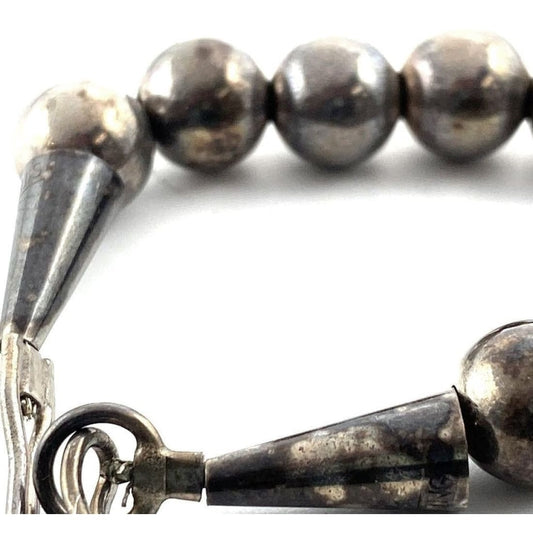 6mm Navajo Pearls Necklace Sterling Silver Stamped Beads Choker Necklace 18"L
