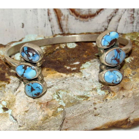 Navajo Golden Hills Turquoise Sterling Open Stacker Cuff Bracelet Geraldine Jones