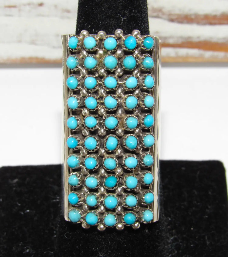 Zuni Sleeping Beauty Turquoise Ring Sz 7.5 Petite Point Design Sterling Silver