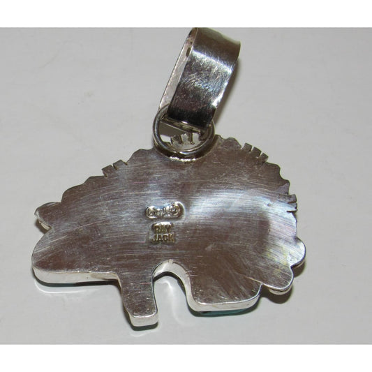 Navajo Ray Jack Bear Pendant Turquoise Spiny Jet Inlay Native American Signed