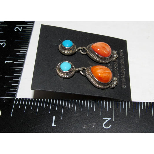 Navajo Turquoise & Orange Spiny Dangle Earrings Sterling Native M. James