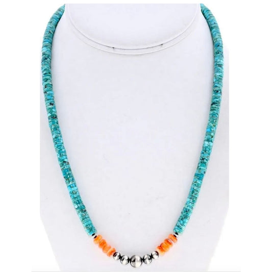 Navajo Turquoise Heishi Necklace Spiny Oyster Navajo Pearls