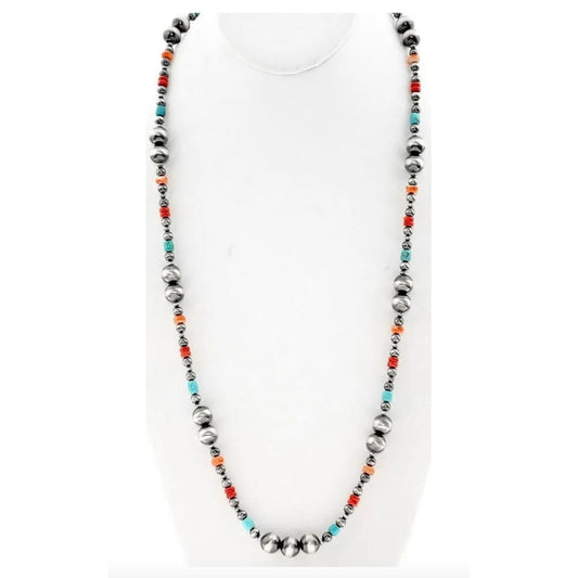 Navajo Pearls Necklace Sterling Silver Turquoise Spiny Graduated Beads 30" Long