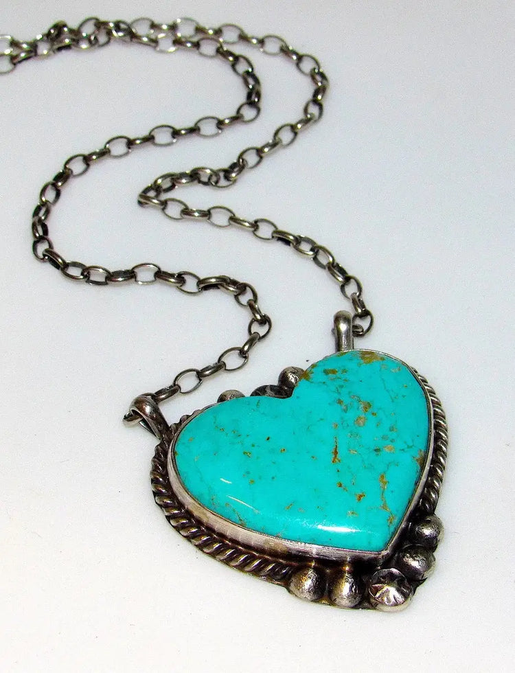 Navajo Kingman Turquoise Heart Bar Necklace Sterling Silver Native G. James
