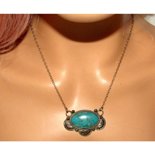 Navajo Royston Turquoise Bar Necklace Sterling Native American L. Goodluck