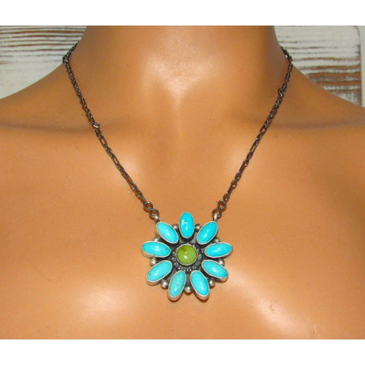 Navajo Sleeping Beauty Turquoise Cluster Bar Necklace Sterling Silver M James
