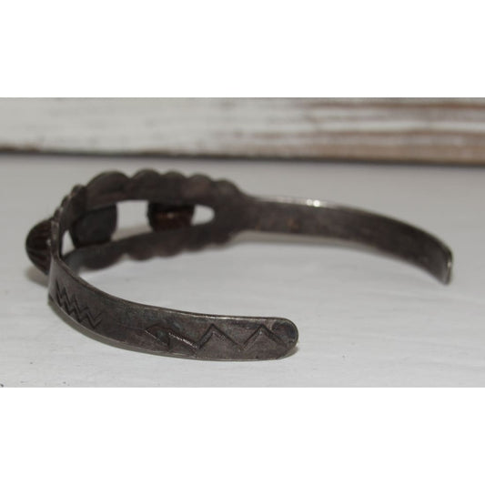 Early Navajo Sterling Silver Sand Cast Cuff Bracelet Vintage