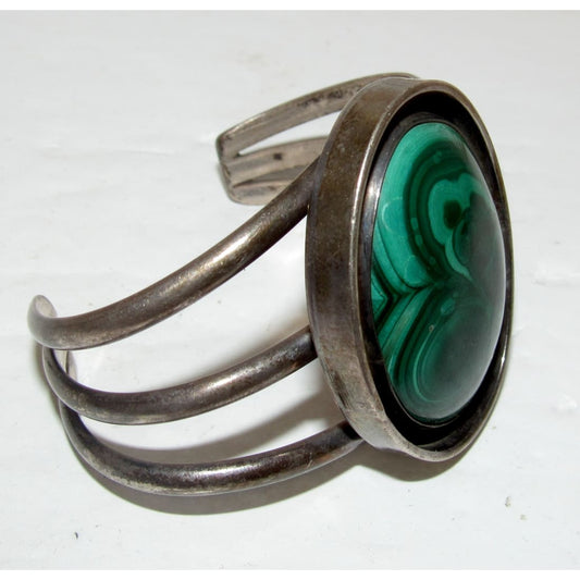Vintage Navajo Malachite Statement Cuff Bracelet Sterling Silver