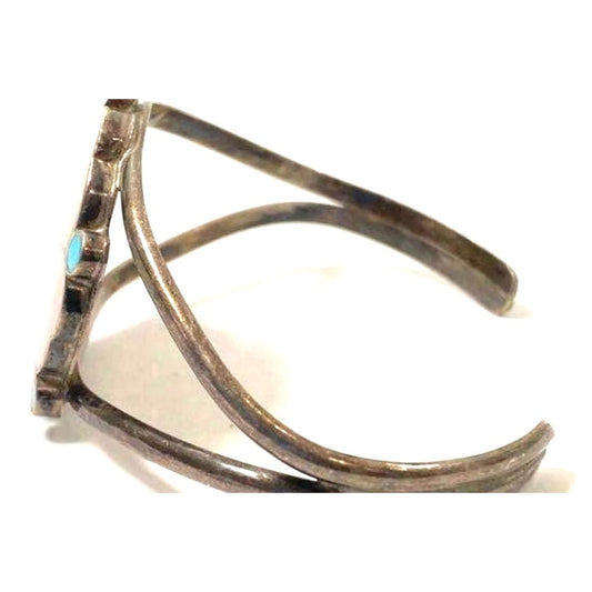 Old Pawn Zuni Inlay Turquoise MOP Cuff Bracelet Sherman and Isabelle Paquin