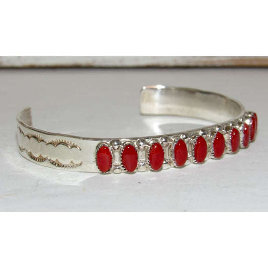Zuni Coral Cuff Bracelet Sterling Silver Stacker Native American Coonsis
