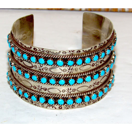 Zuni Turquoise Stacker Cuff Bracelet Sterling Silver
