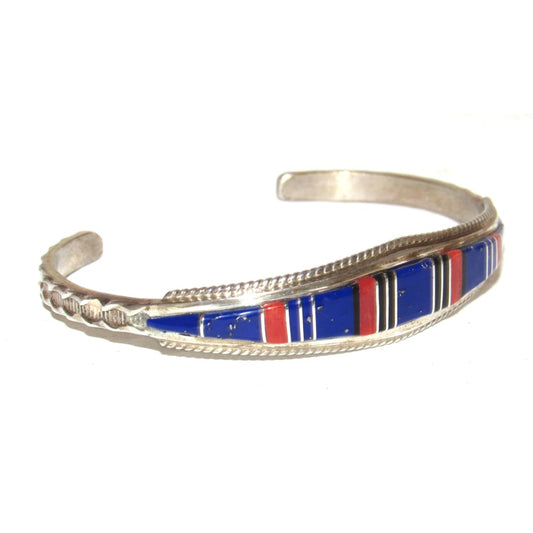 Zuni Inlay Lapis Coral Bracelet Sterling Native American D. Panteah
