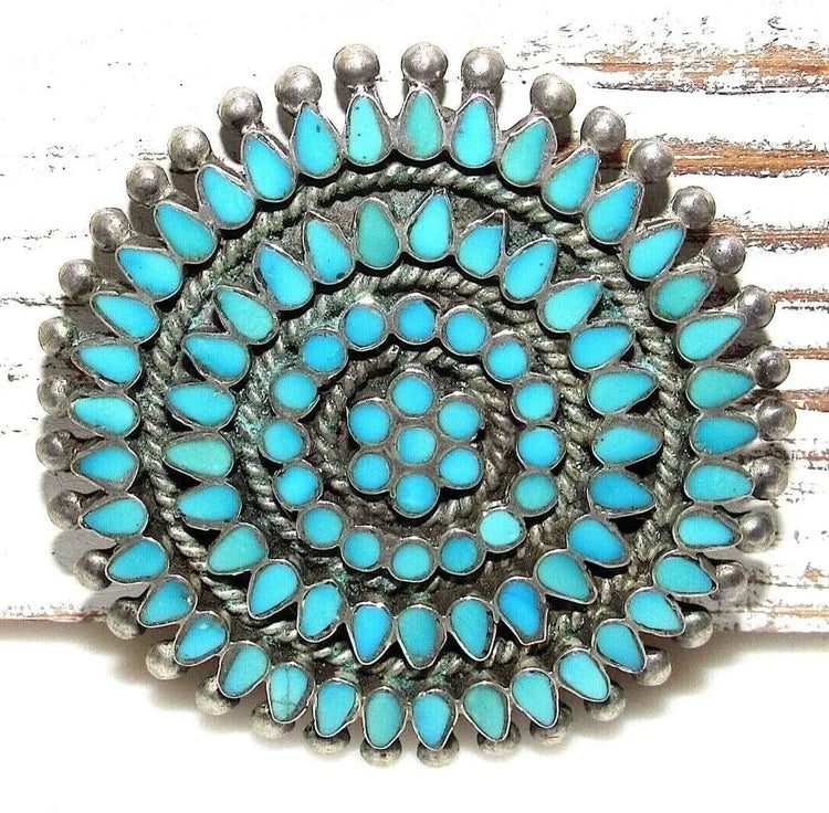 Old Pawn Navajo Turquoise Cluster Brooch Pin Vintage