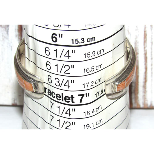 Navajo Orange Spiny Inlay Stacker Cuff Bracelet Sterling R. Begay