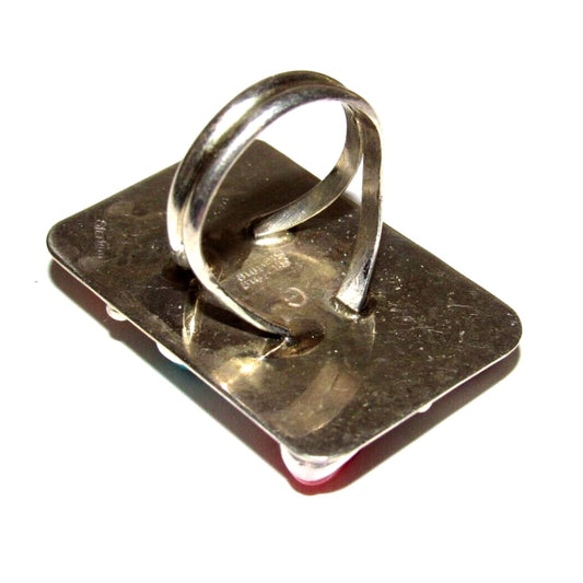 Navajo Orange Red Purple Spiny Cluster Ring Turquoise Sz 8 Sterling Silver