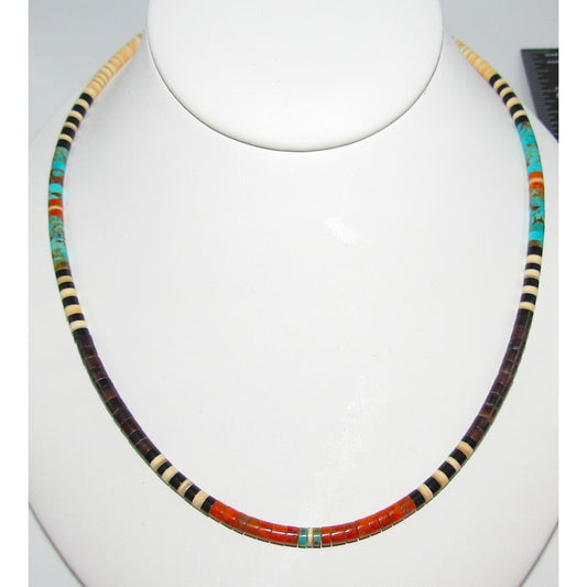 Santo Domingo Rolled Shell Orange Spiny & Turquoise Heishi Choker Necklace 16"L