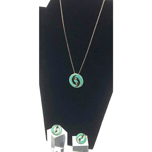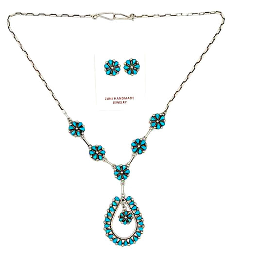 VTG Zuni Turquoise & Sterling Silver Dangle Necklace and Earrings Set
