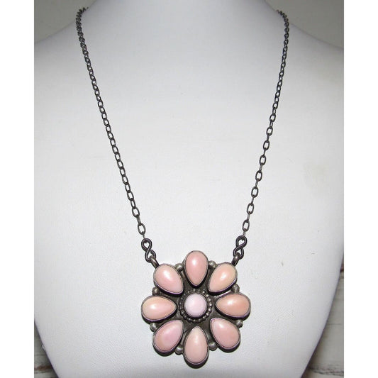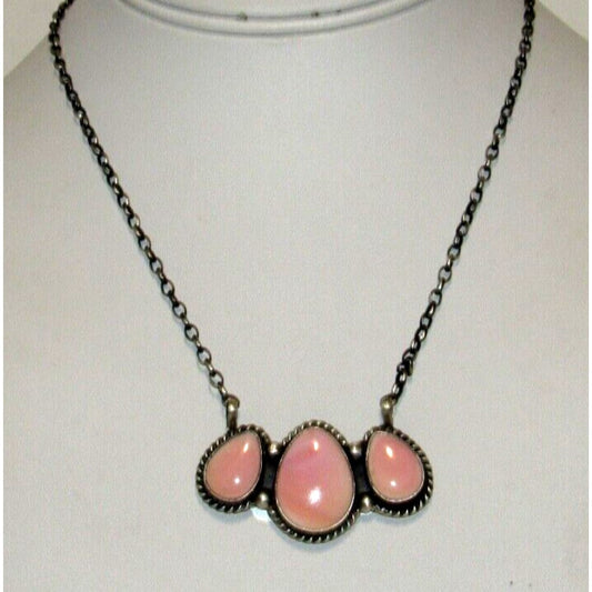 Navajo Pink Conch Cluster Bar Necklace Sterling Silver B. Lee