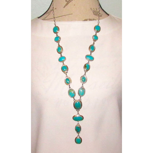 Navajo Royston Mine Turquoise Lariat Necklace Sterling Silver K. Pino