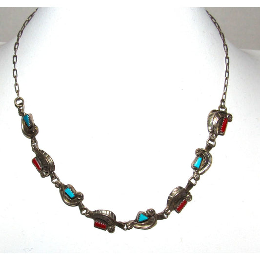 Vintage Navajo Sterling Silver Turquoise Coral Blossom Necklace