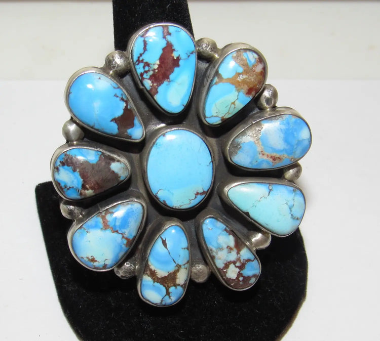 Navajo Turquoise Cluster Statement Ring Sz 8.5 Sterling Silver Signed