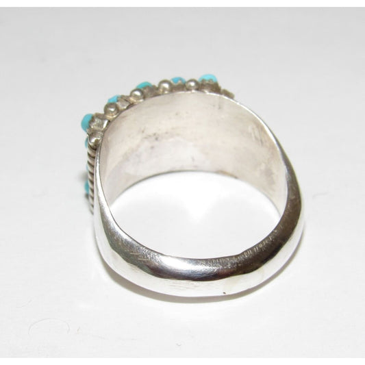 Zuni Turquoise Cluster Ring Size 9.5 Sterling Silver Mary Ann Felix Chavez