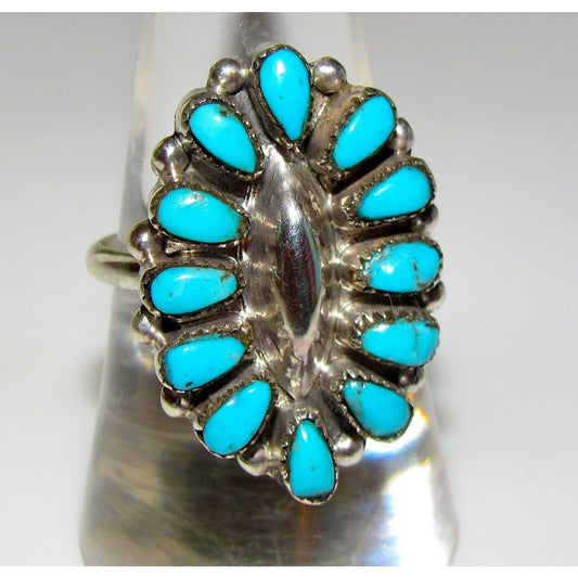 Zuni Sterling Silver Turquoise Cluster Ring Size 6 D Leekity
