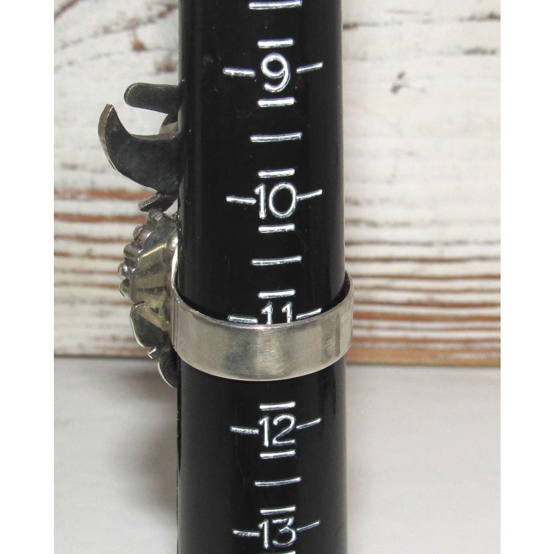 Large Navajo Kachina Ring Sz 11 Bennie Ration Red Orange Spiny Sterling
