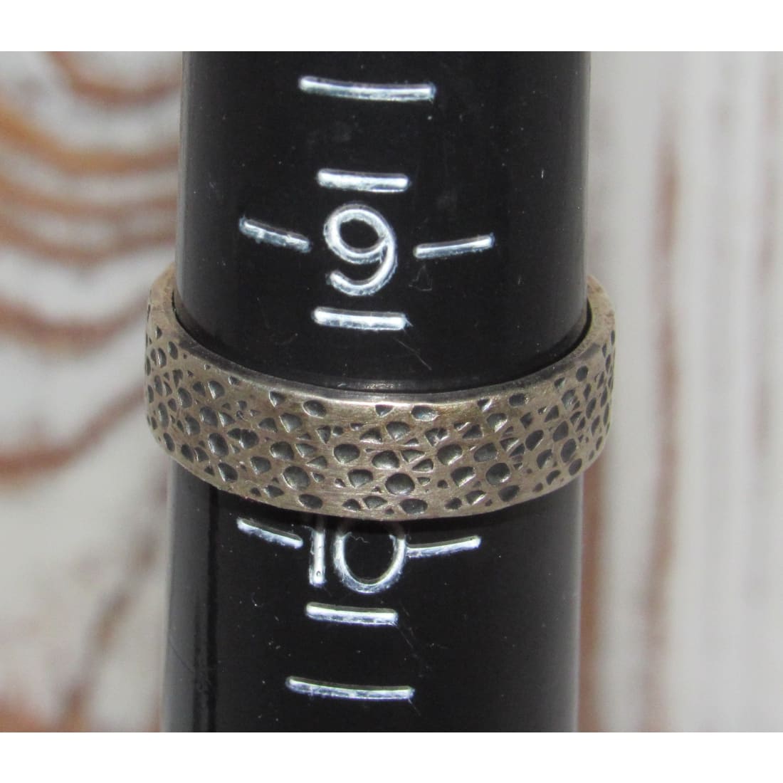 Hands adorned with turquoise rings and silver bangles rest on a colorful woven textile.