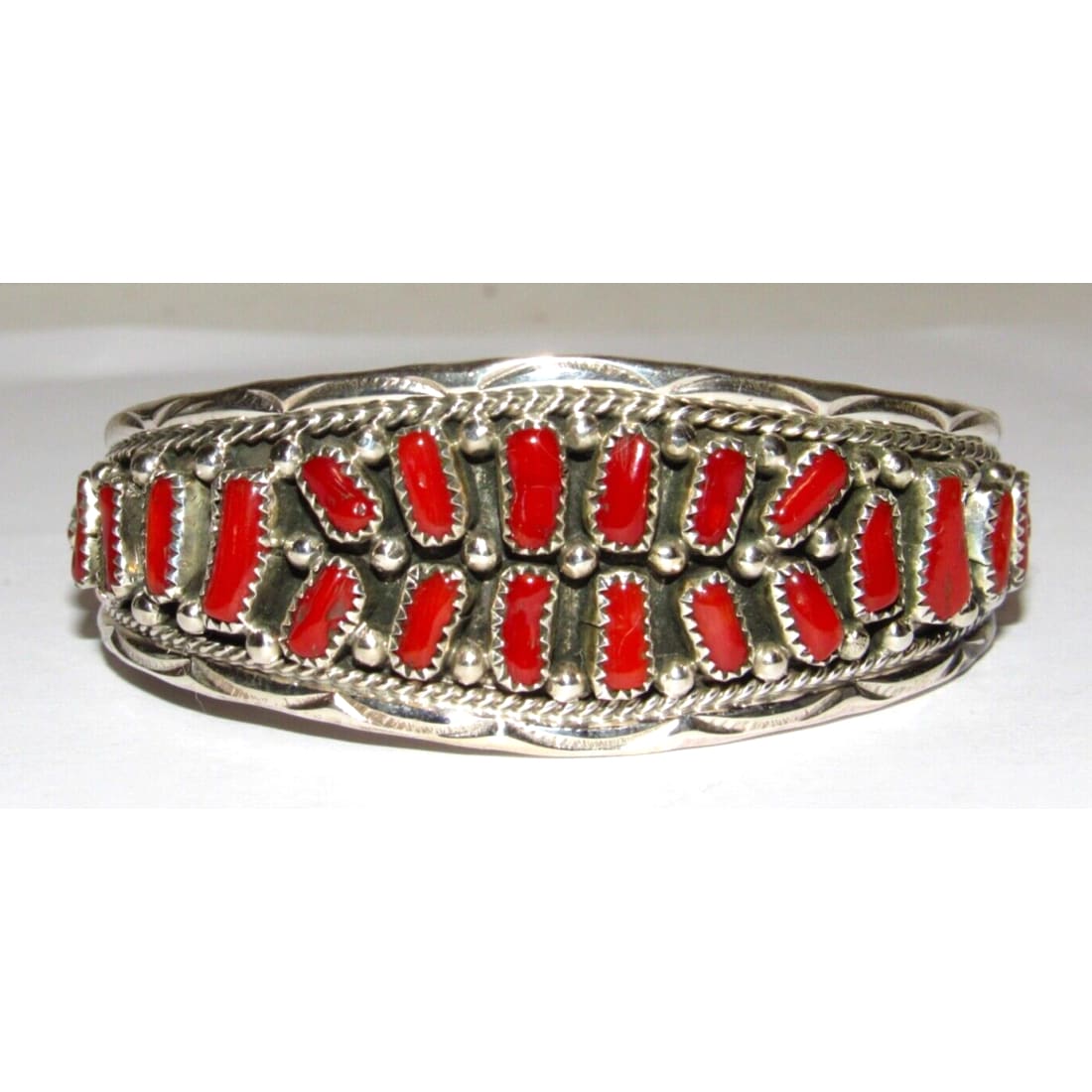 Navajo Mediterranean Coral Cuff Cluster Bracelet Sterling Silver Signed