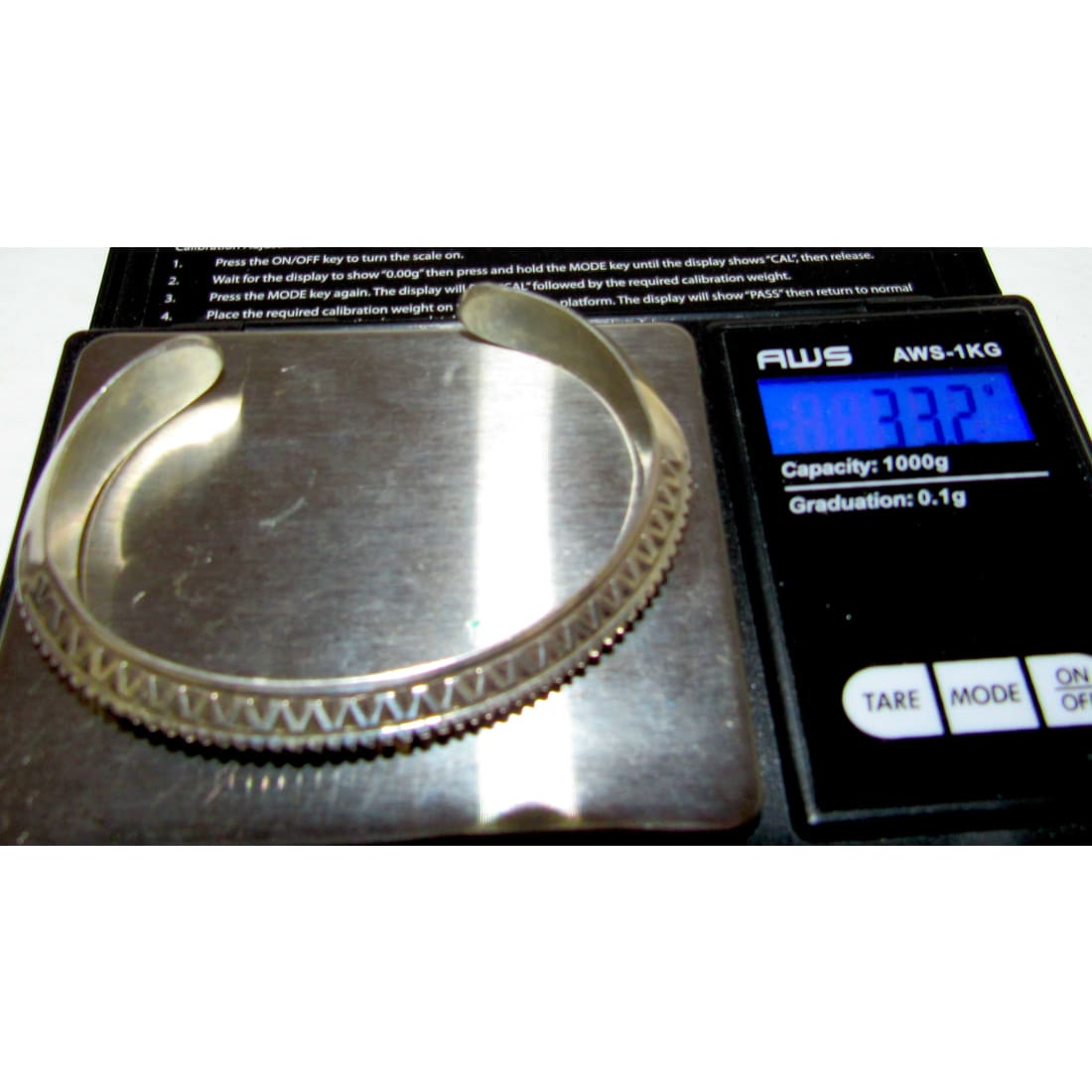 Phenomenal, substantial gauge sterling silver Native American Navajo intricately hand stamped, double sided cuff bracelet by the Navajo artist .L. Secatero.